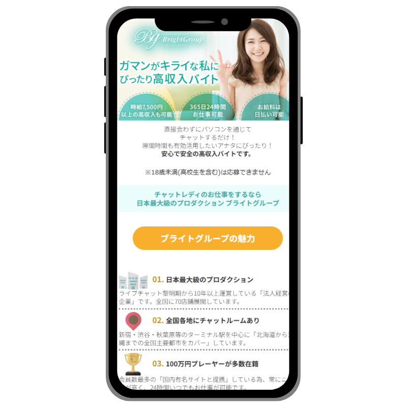 - ブライトグループは大手の老舗チャットレディ事務所