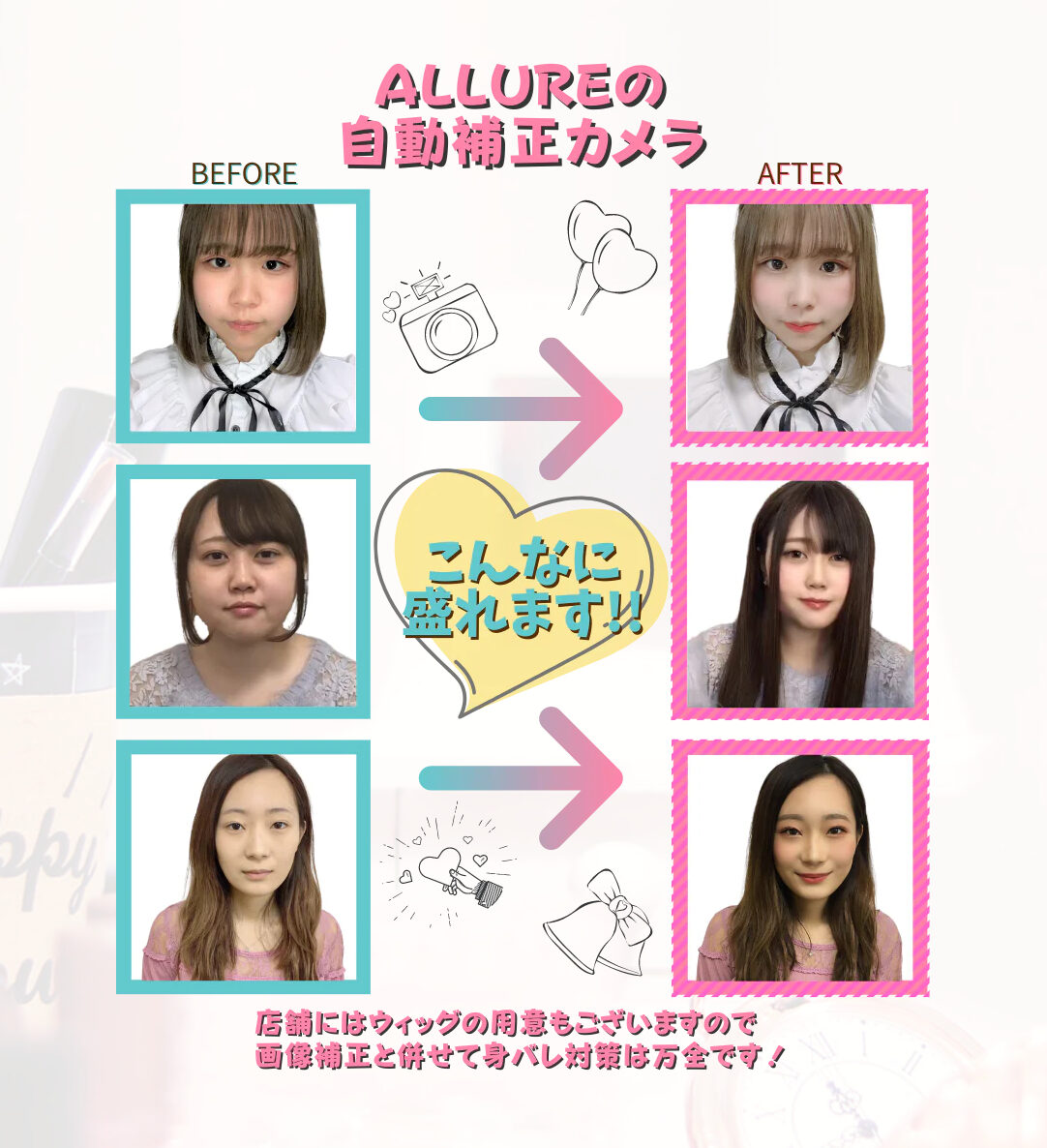 15分おきに衣装や髪形を変えて待機する